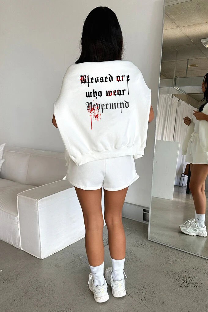 Nevermind Oversize Pamuklu Beyaz Hoodie - Drip Streetwear Tasarım Sweatshirt- Kış ayları için ideal, sıcak tutan oversize tasarım.